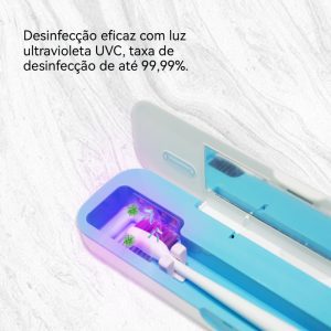 Estojo de esterilizador de escova de dentes com suporte e tampas recarregável e portátil para qualquer tipo de escova